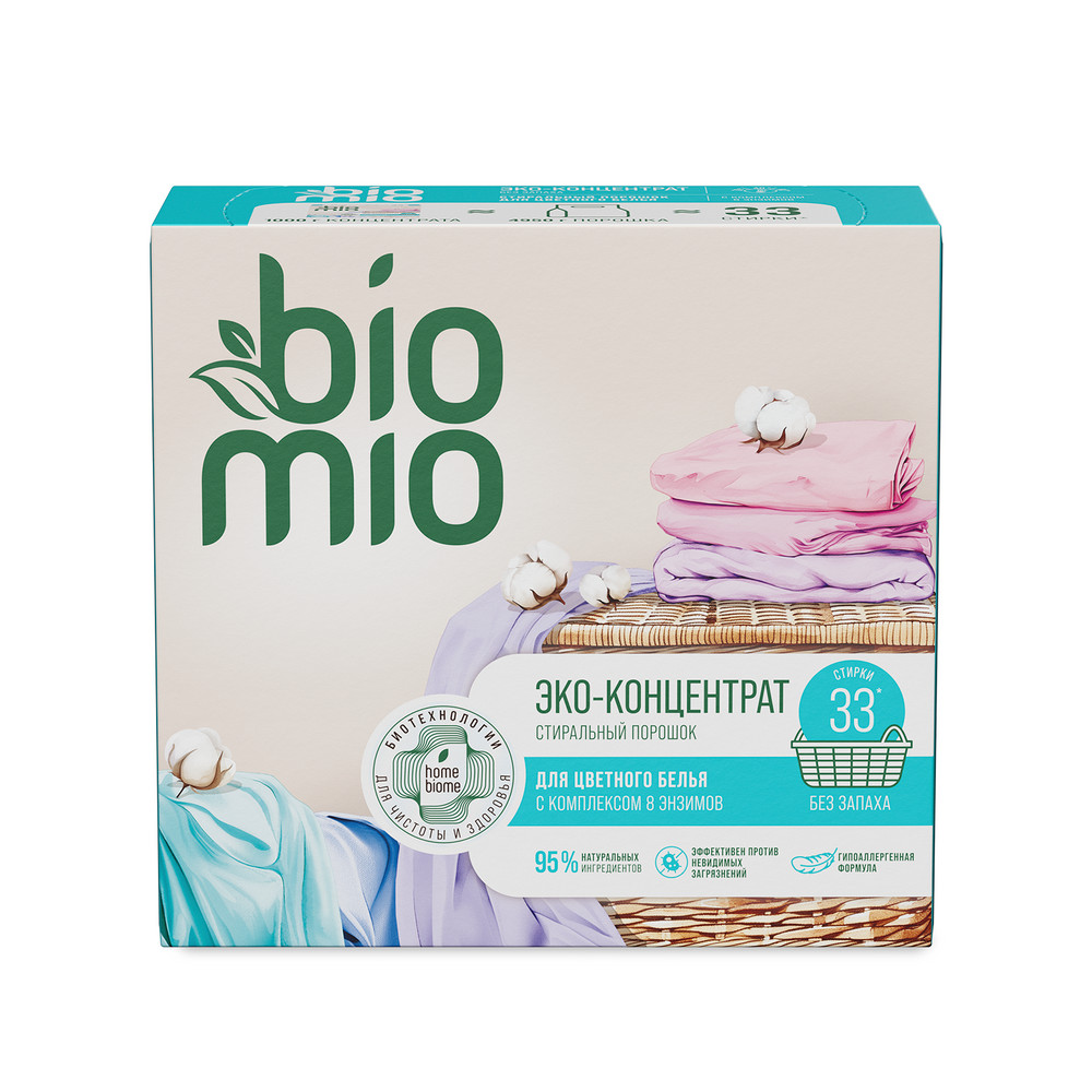Чистота для вашего здоровья и комфорта. Экологичный концентрированный порошок для стирки цветного белья с ионами серебра благодаря биотехнологиям HOMEBIOME удаляет невидимые загрязнения, сохраняет цвет и форму тканей. Благодаря своей гипоаллергенной формуле идеально подходит для стирки детского белья и одежды людей с чувствительной кожей. Экономичный расход - благодаря концентрированной формуле, 1000г. хватает на 33 стирки при использовании средства в мягкой воде. HOMEBIOME в составе, глубоко очищает и удаляет загрязнения из волокон тканей, в том числе невидимые бактериальные загрязнения, которые могут вызывать раздражения и сухость кожи. Швейцарская инновационная формула, на которую подана Европейская патентная заявка. Обновленная формула для лучшего результата:Ионы серебра обладают антибактериальным эффектом. Комплекс ферментов очищает от жировых, белковых и полисахаридных загрязнений. Экстракт хлопка сохраняет цвет и форму тканей. Быстро растворяется и хорошо вымывается из волокон при полоскании, предотвращает посерение ткани. Эффективен при стирке в низких температурах от 30*С. Подходит для ручной и машинной стирки. Содержит компонент для усиленного смягчение воды для защиты стиральной машины от налета. Произведен на 95% из ингредиентов натурального происхождения. Биоразлагаемый, безопасен для септиков и планеты. Не содержит: фосфаты, агрессивные ПАВ, SLES, хлор, ПЭГ, ЭДТА, отдушки и оптические отбеливатели. Мерная ложка 30 мл внутри упаковки. 1 мл= 1 гр. порошка.