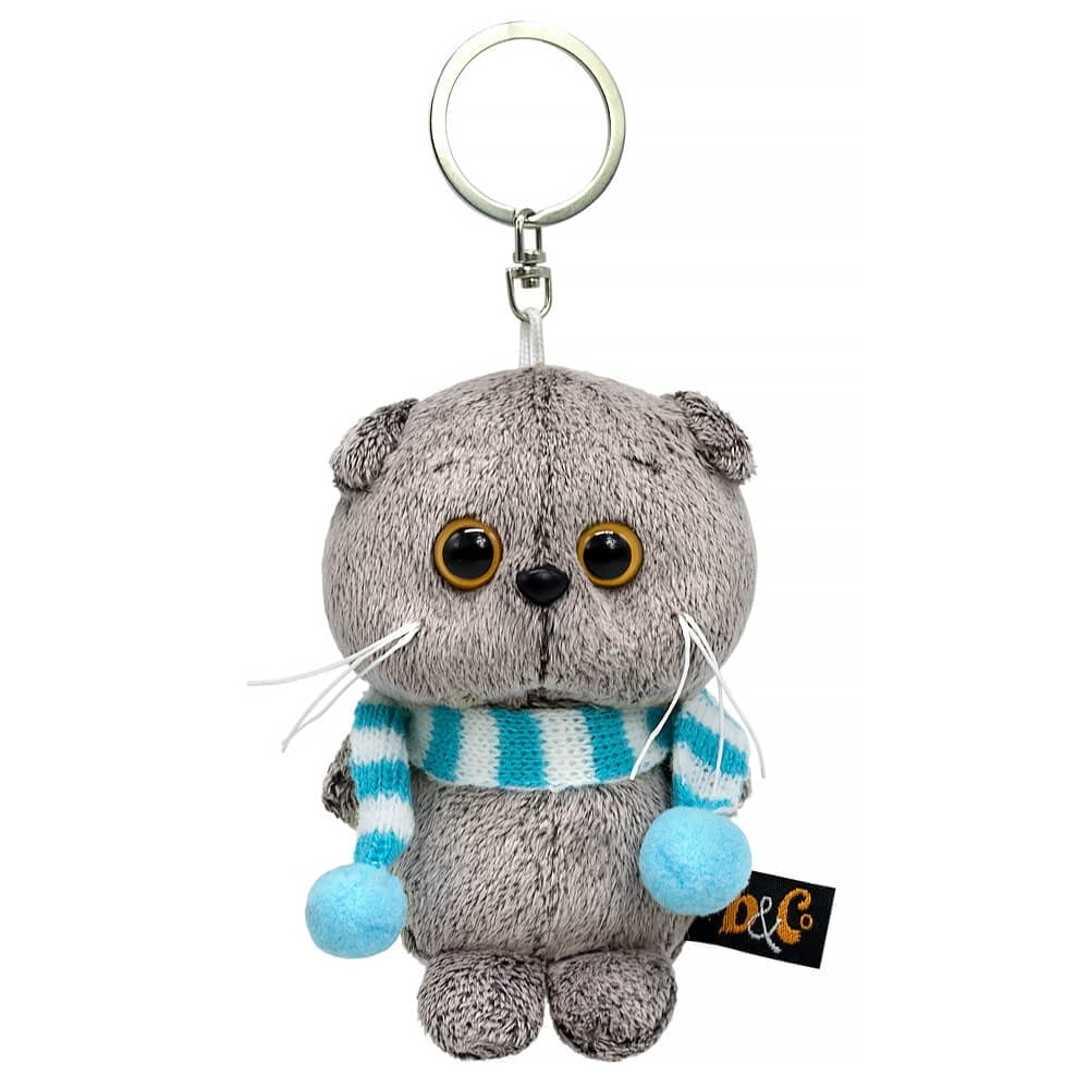 Брелок Кот Басик в полосатом шарфе, с кольцом, 12 см