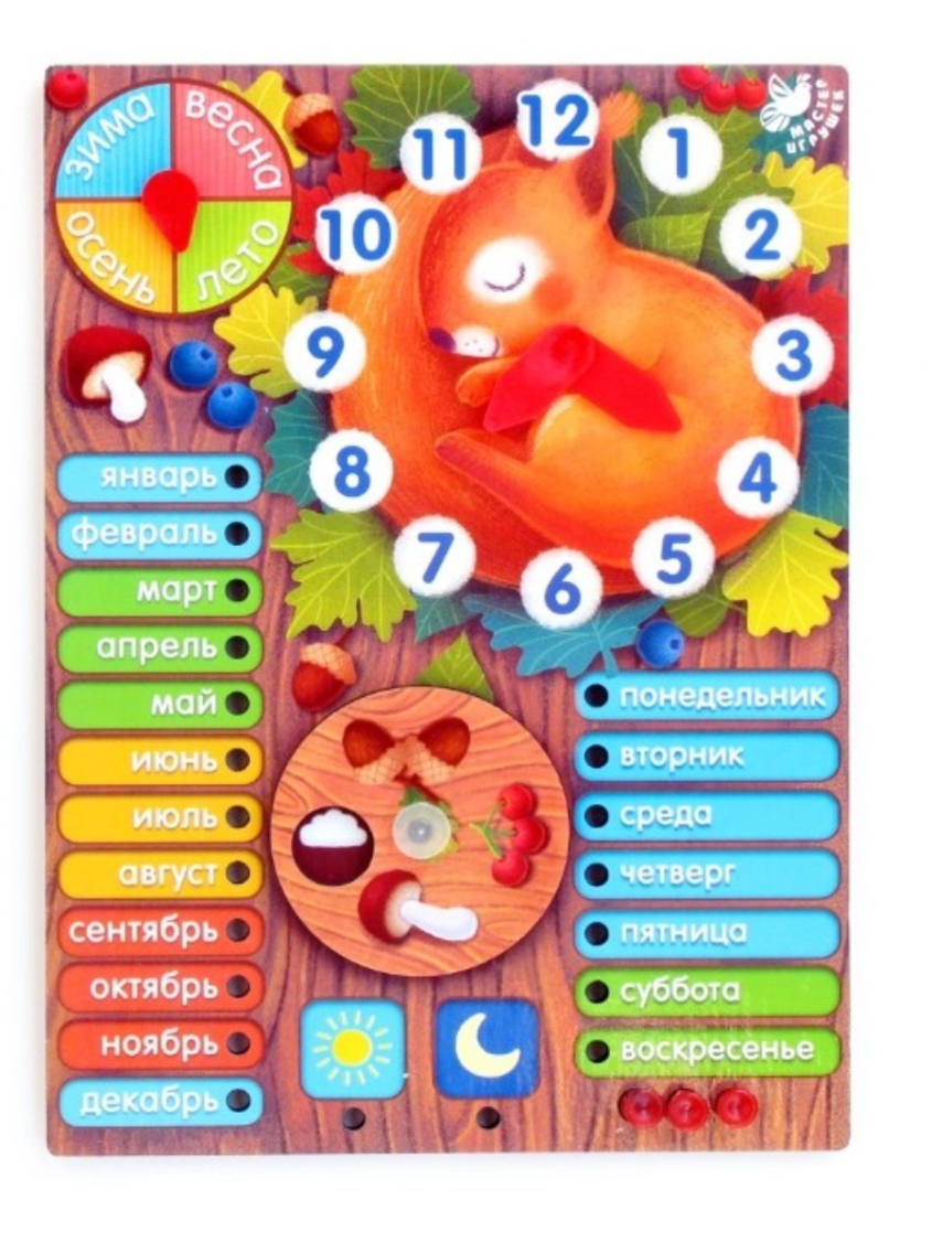 Обучающая доска «Белкин сон» познакомит ребенка с днями недели, месяцами, временами года, погодой и временем суток.