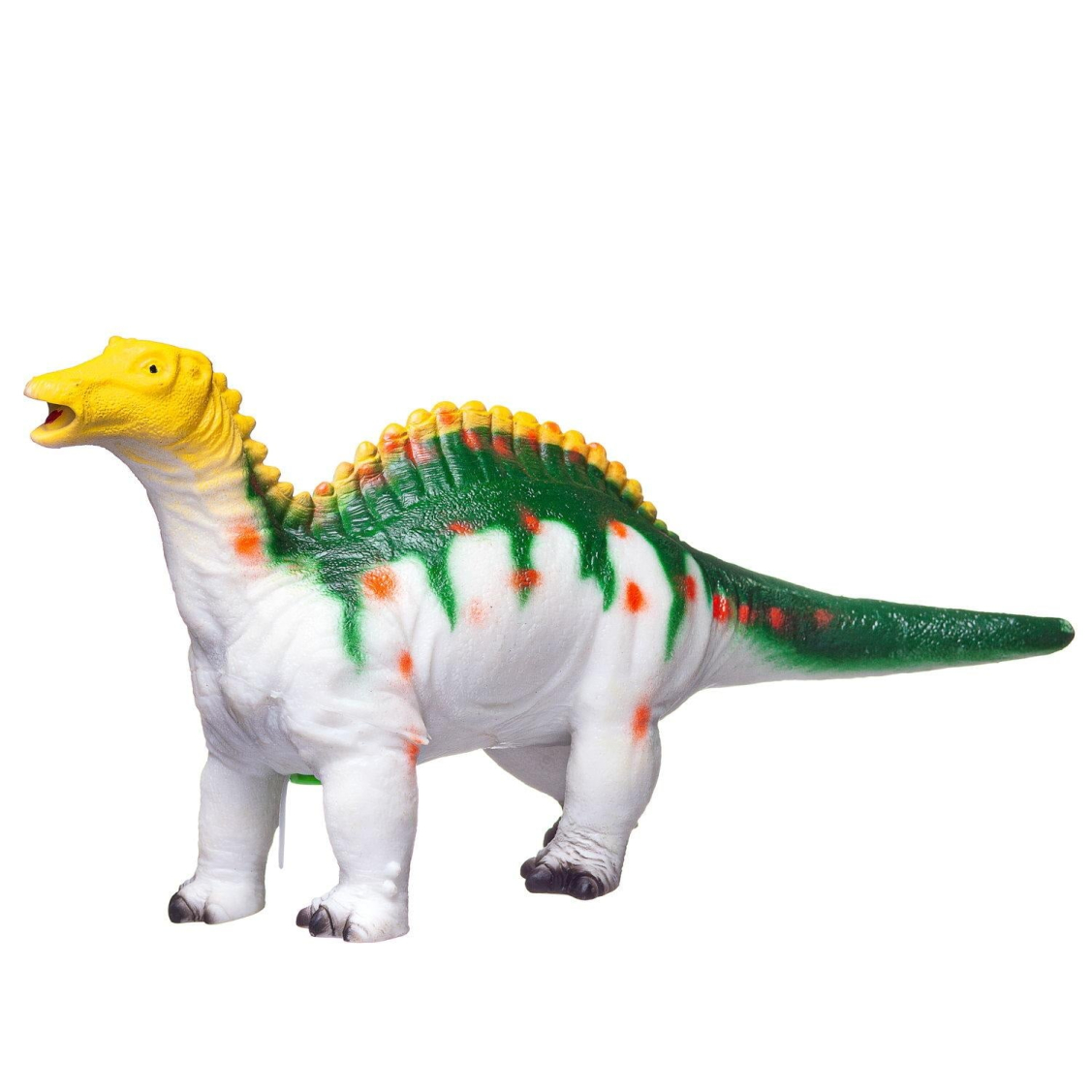 Фигурка динозавра поможет ребенку перенести доисторических животных в настоящее время, разыгрывая с ней увлекательные сценки. Она выполнена из мягкого, приятного на ощупь полимерного материала, который слегка сжимается при сжатии. Встроенный звуковой модуль, издающий звук рычания, придает процессу игры с динозавром реалистичность.