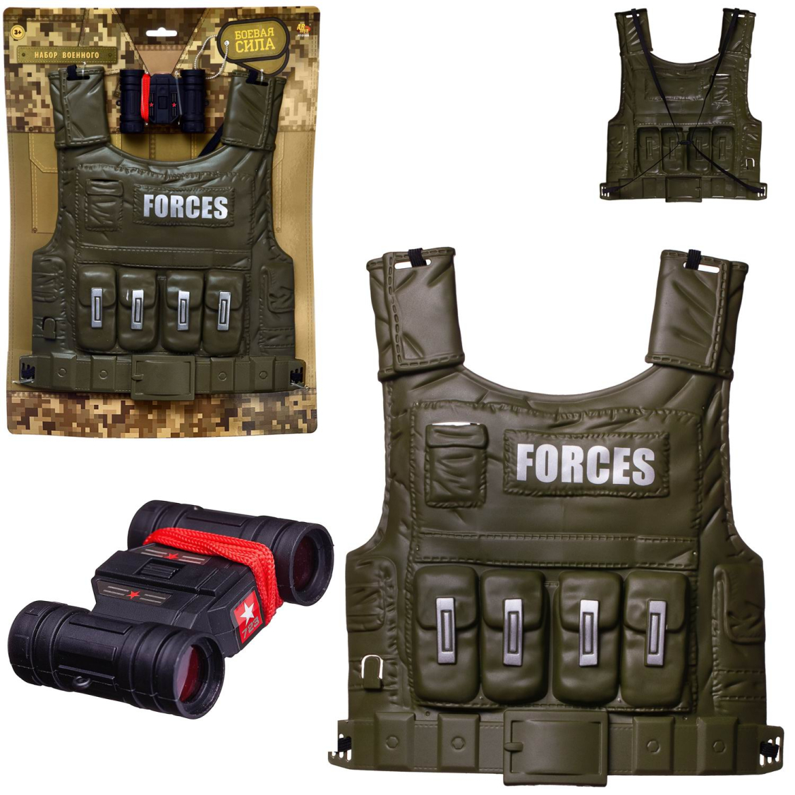Игровой набор из серии "Боевая сила" от бренда ABtoys станет отличным подарком для любого мальчика. В его составе военный жилет и бинокль. Жилет изготовлен из достаточно мягкого пластика, ему предана объемная форма, сымитированы карманы, ремни, клапаны. Ребенок сможет легко его одеть на себя, используя специальные лямки-резинки. В играх с биноклем мальчик проявит свою фантазию, потренирует наблюдательность. Бинокль никогда не потеряется, так как в комплекте есть удобный шнурок, чтобы повесить его на шею. Используя предметы из военного набора, мальчик сможет разыграть множество захватывающих сюжетов на военную тему, проявить воображение, примерить на себя роль настоящего бойца.