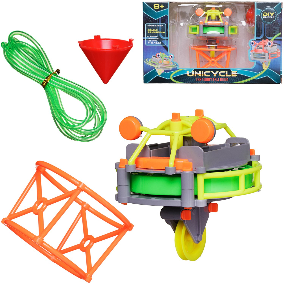 Комплектность: робот-гироскоп – 1 шт., подставка – 1 шт., конусная насадка – 1 шт., трос – 1 шт., лист с наклейками – 1 шт., инструкция – 1 шт.
