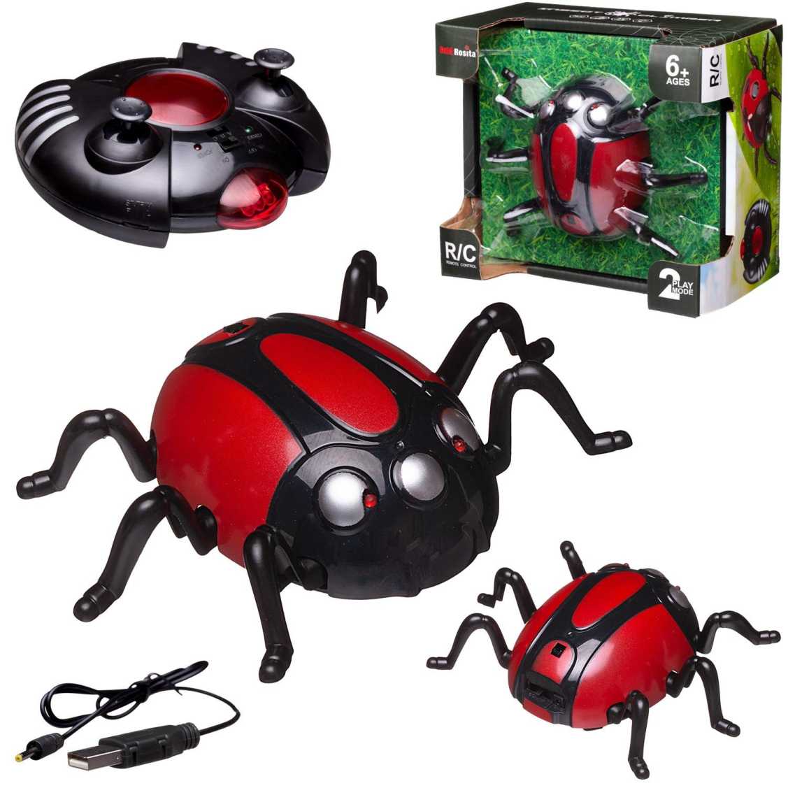 Интерактивный шустрый жук на радиоуправлении от бренда Junfa порадует своим видом и функциональными возможностями как ребёнка, так и взрослого! Ведь с такой оригинальной игрушкой можно придумать много веселых игр, позабавить себя, своих друзей и родных. Он может не только быстро бегать по полу, вращаться на 360°, но и взбираться вверх по стене и даже передвигаться по потолку! Во время движения членистоногое животное забавно шевелит своими шестью лапками, его глаза зловеще светятся красным цветом. Игрушка управляется с помощью пульта, который имеет три канала. Благодаря переключателю частоты становится возможным управление несколькими такими пауками рядом.