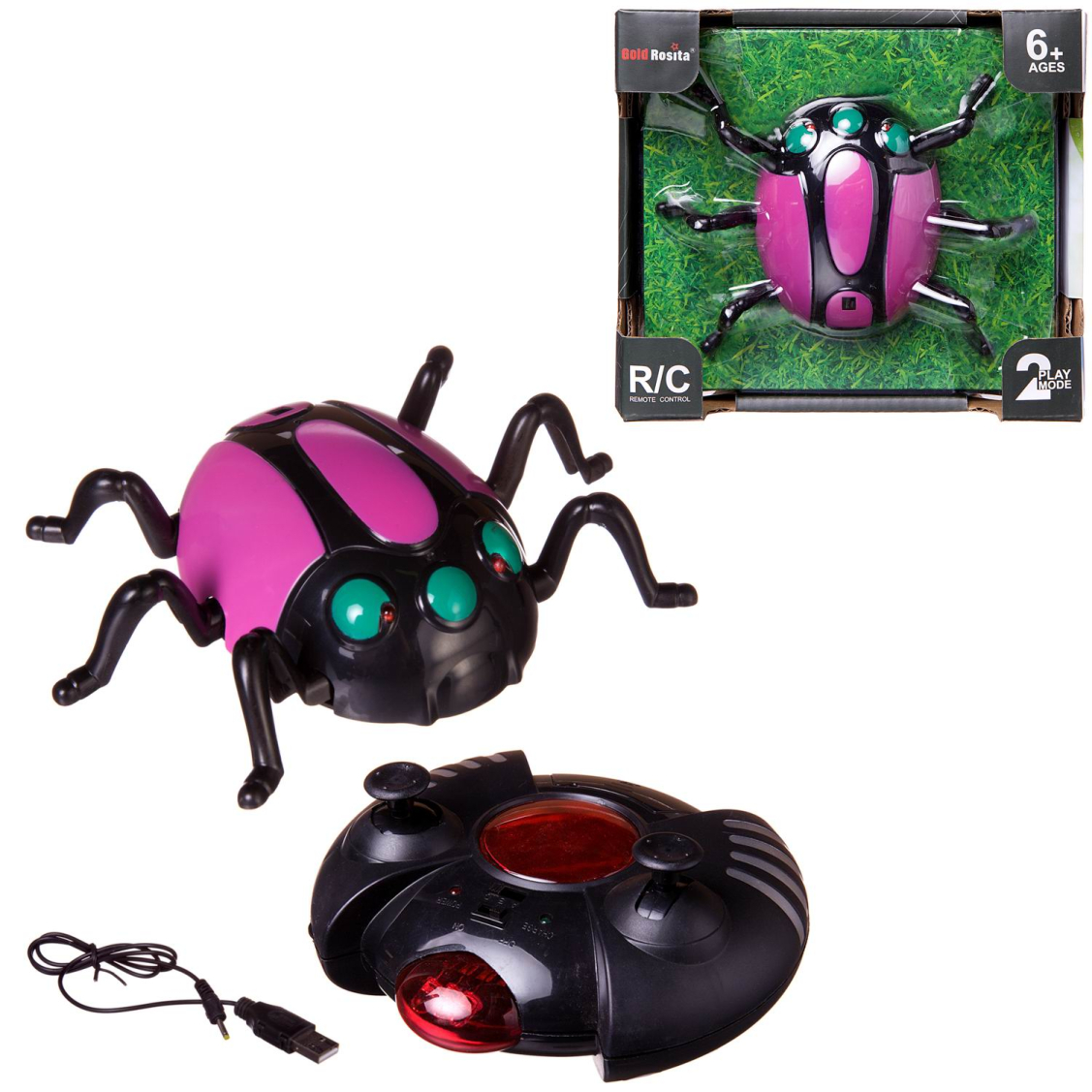 Интерактивная игрушка JUNFA Жук р/у ползает по стенам, световые эффекты, розовый