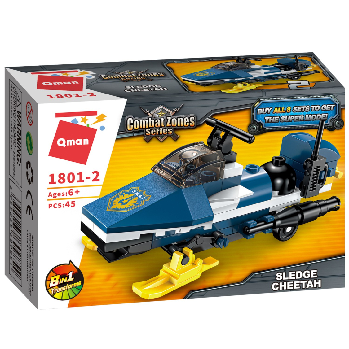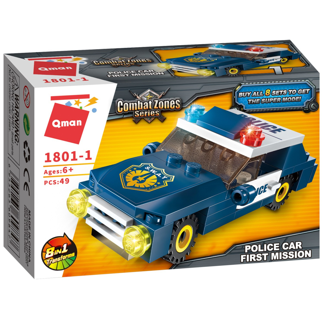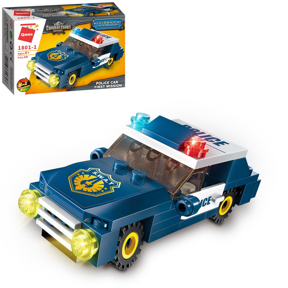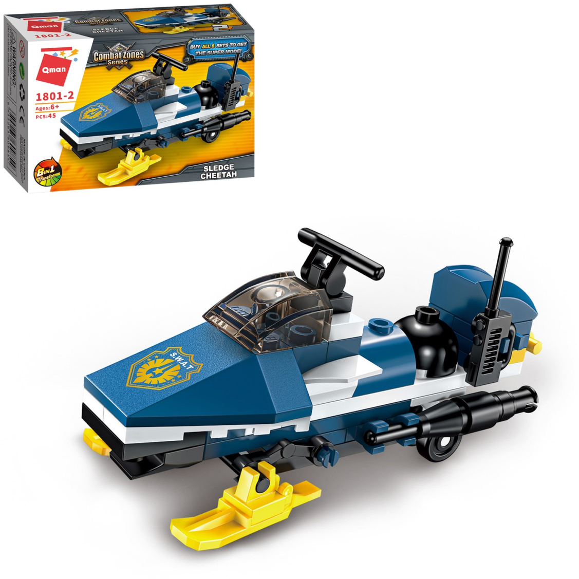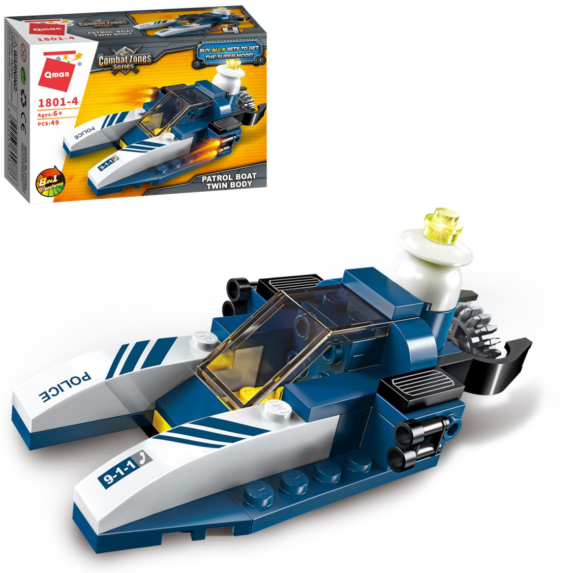 Из каждого набора конструктора от производителя QMAN из серии «Combat Zones» ребенок может собрать собственными руками модель полицейской техники. Если приобрести, собрать и соединить между собой все 8 наборов серии, то получится большой полицейский вертолет. Простое и надежное соединение деталей разных размеров и форм между собой обеспечат специальные крепления. Во время игры ребенок сможет задействовать свою фантазию и придумать интересные сценарии. В процессе сборки и игры с готовой моделью юный конструктор будет развивать мелкую моторику рук, пространственное мышление, внимательность и усидчивость.