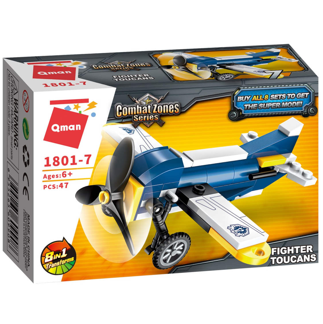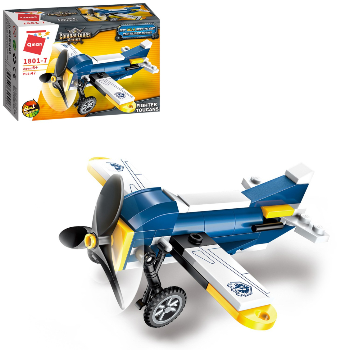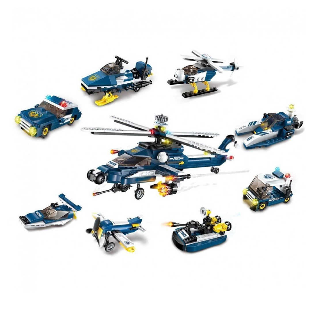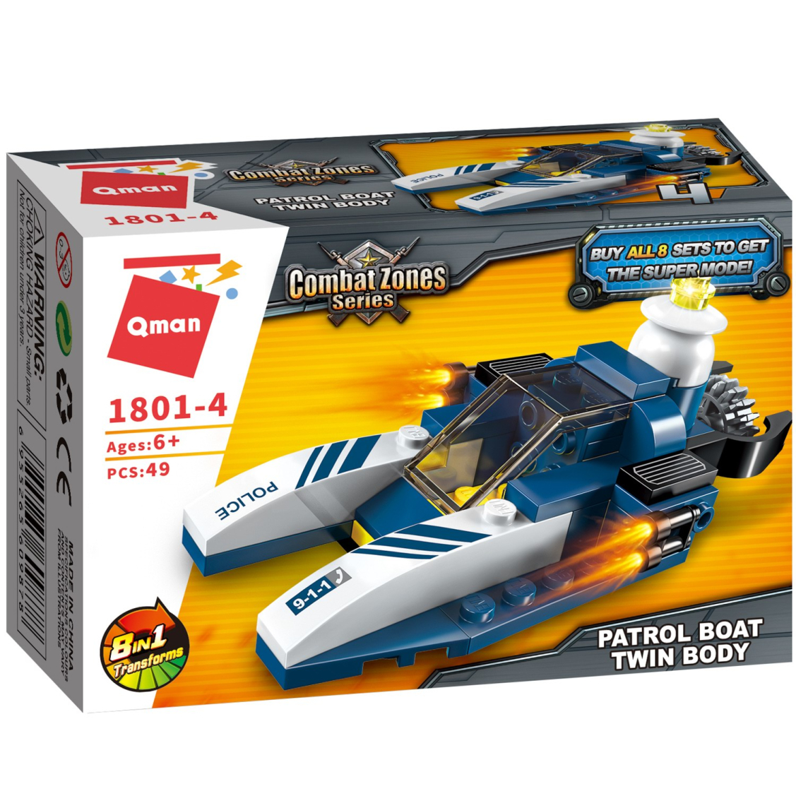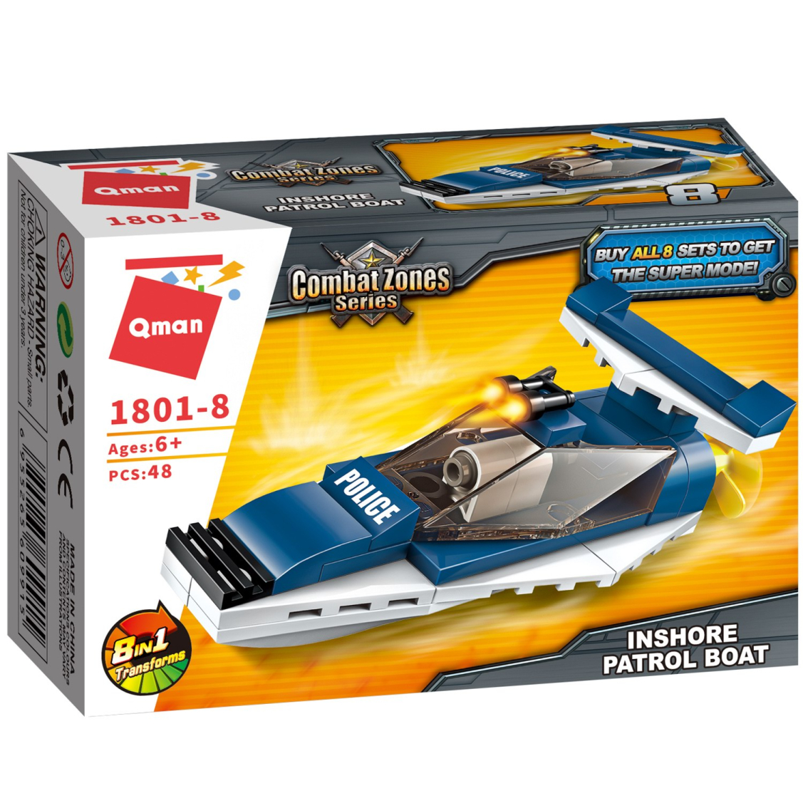 Из каждого набора конструктора от производителя QMAN из серии «Combat Zones» ребенок может собрать собственными руками модель полицейской техники. Если приобрести, собрать и соединить между собой все 8 наборов серии, то получится большой полицейский вертолет. Простое и надежное соединение деталей разных размеров и форм между собой обеспечат специальные крепления. Во время игры ребенок сможет задействовать свою фантазию и придумать интересные сценарии. В процессе сборки и игры с готовой моделью юный конструктор будет развивать мелкую моторику рук, пространственное мышление, внимательность и усидчивость.