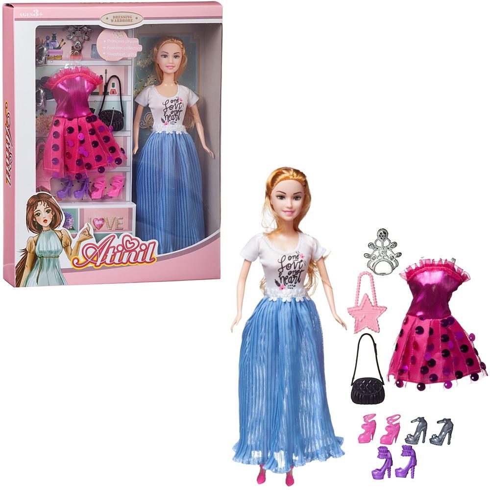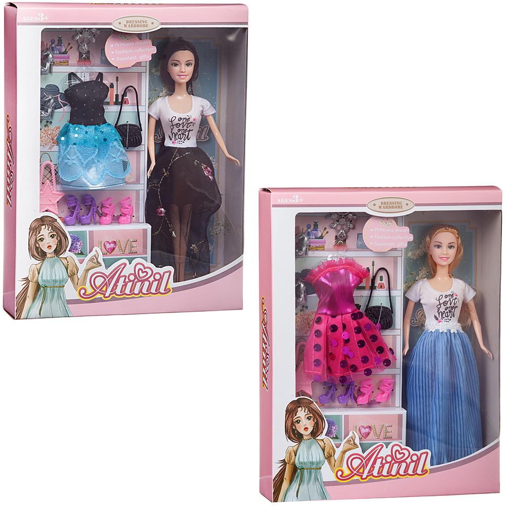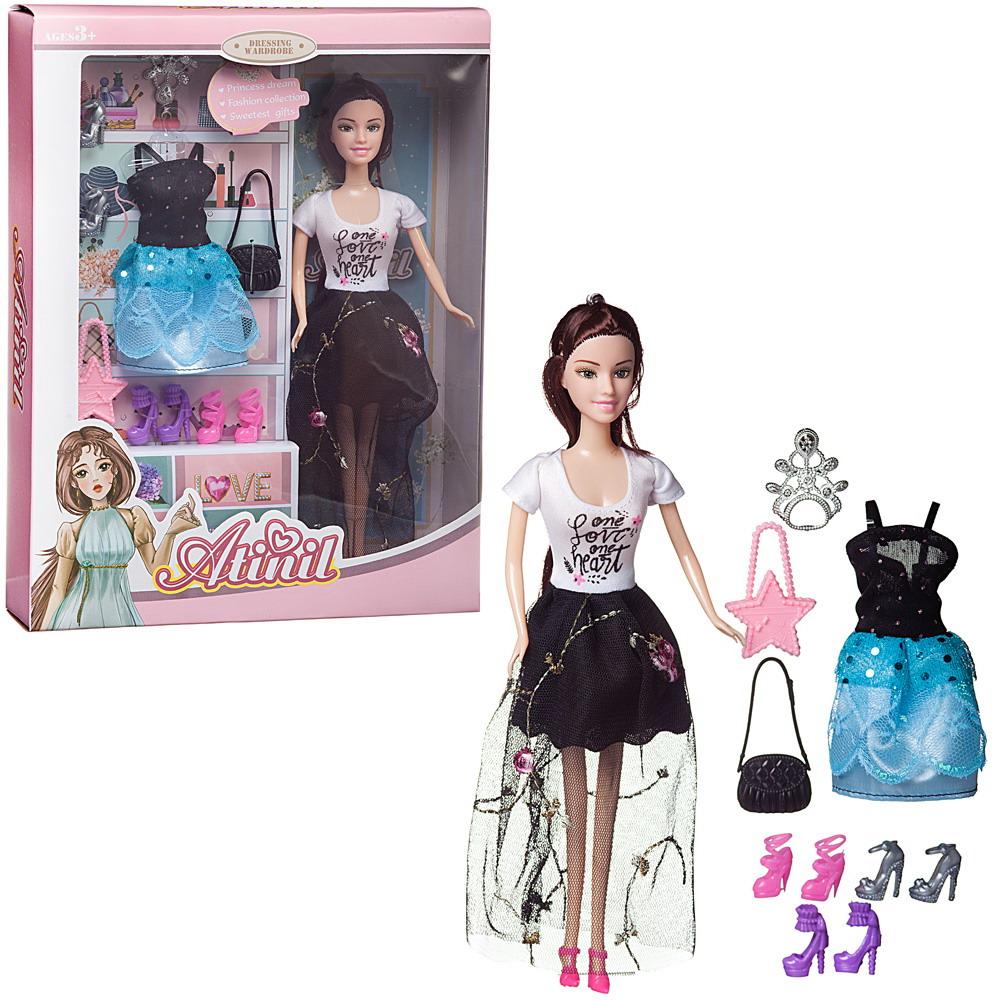 Кукла Atinil выглядит как красивая молодая девушка, которая разбирается в новинках моды и любит следить за собой. Ребенок, играя с такой куклой, сможет придумать множество различных сюжетов. Также в наборе имеются модные аксессуары. У куклы подвижны части тела, благодаря чему в процессе игры девочка сможет менять положение игрушки. А в ее гардеробной есть еще 2 красивых платья и многочисленные аксессуары.