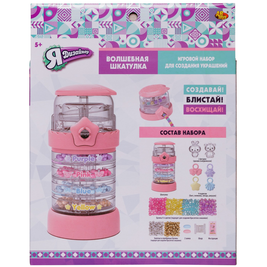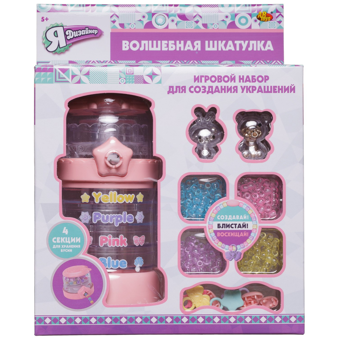Уникальный набор из серии "Я дизайнер" от бренда ABtoys просто необходим каждой девочке, которая любит создавать украшения для себя, мамы и своих подруг. Набор в виде длинной стильной розовой банки с прозрачными отсеками состоит из двух частей: нижней с четырьмя отсеками для хранения бусин разных цветов и верхней с мини-машинкой для плетения браслетов из них. Для создания браслетов отсоедините верхнюю часть, вставьте специальный шнур в машинку, насыпьте в верхний отсек бусины желаемых цветов в желаемом порядке. Вращайте основание машинки по часовой стрелке, бусины будут по одной надеваться на шнур. Отрежьте шнур нужной для формирования браслета длины с запасом для добавления специальных бусин. Создание украшений - отличный способ самовыражения, проявления креатива и творческого потенциала. Собери сама и восхищай других!