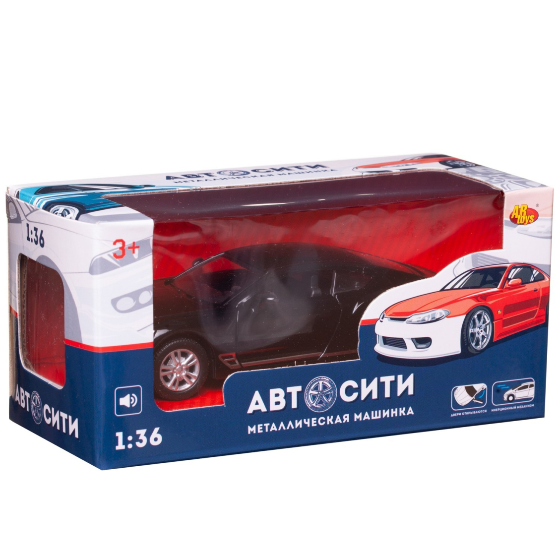 Машинка металлическая Abtoys АвтоСити 1:36 Седан купе инерционный с открывающими передними дверцами черный свет звук