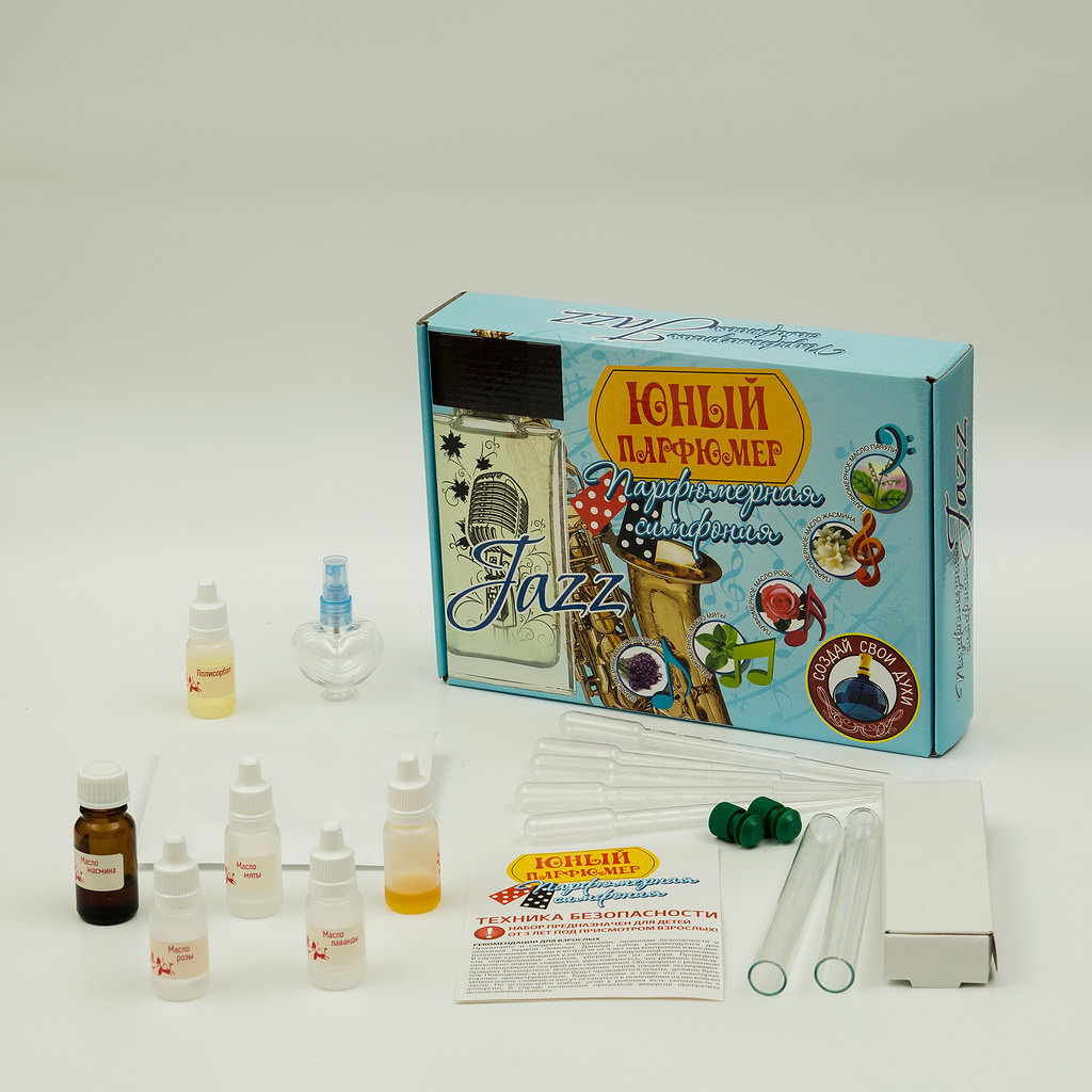 Набор для экспериментов Инновации для Детей Юный Парфюмер: Парфюмерная симфония Джаз (с натуральными маслами пачули, жасмина, розы, мяты, лаванды, основой для духов и лабораторной посудой)
