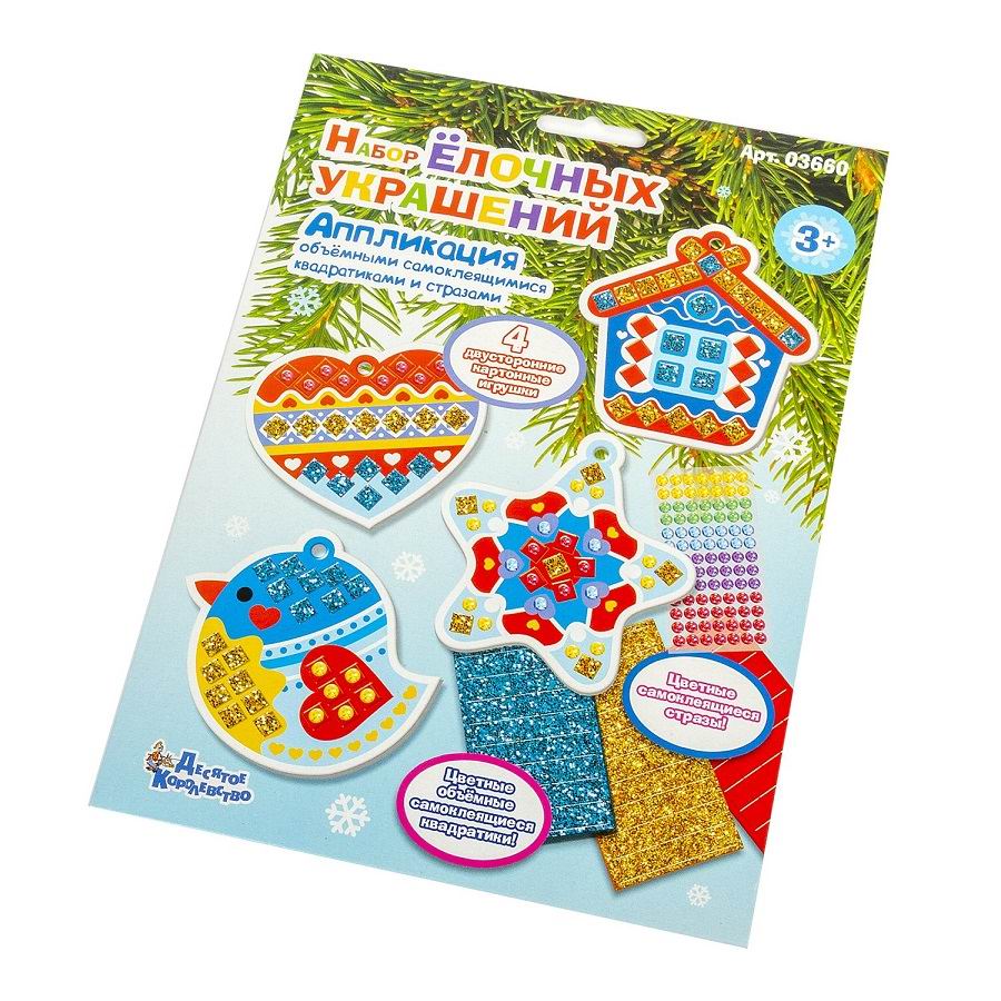 Аппликацию с самоклеящимися элементами «Набор елочных украшений 1», как и многие другие , можно приобрести со скидкой в интернет магазине производителя «Десятое Королевство».