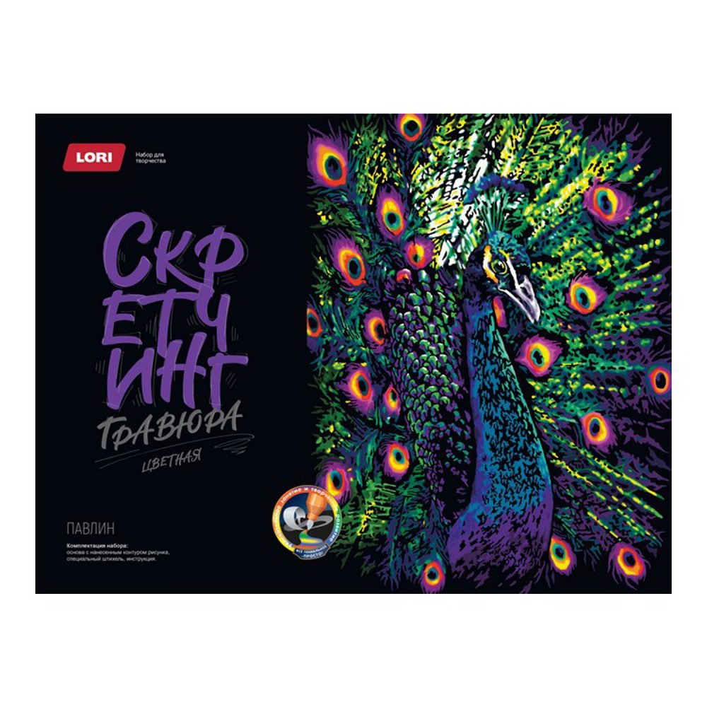 Набор для творчества LORI Скретчинг Неоновые животные Павлин 30*40см