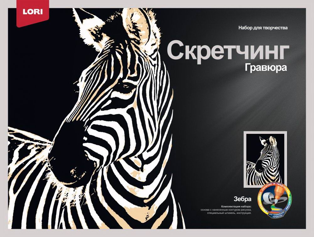 Набор для творчества LORI Скретчинг Животные Зебра 30*40см