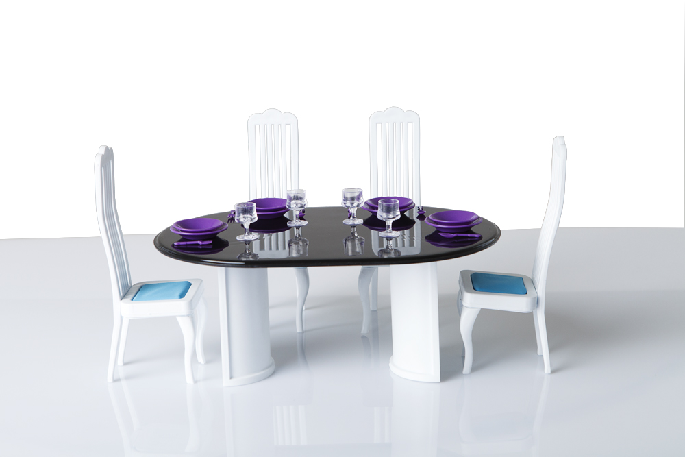 Стильная столовая «Конфетти» прекрасно впишется в интерьер кукольного домика малышки и создаст в нём тёплую атмосферу. Она состоит из стола, четырёх стульев и набора посуды на 4 персоны. Мебель предназначена для деток от 3-х лет для игры с куклами до 30 см, идеально подойдёт к домам из серии «Конфетти» — коттедж и дом.