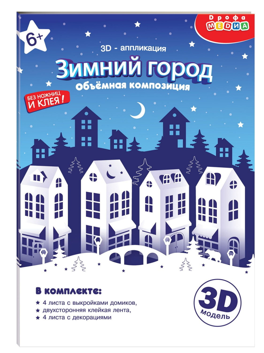 Объёмная аппликация «Зимний город. Объёмная аппликация» – отличный набор для творчества, который украсит вашу комнату. Детали из перламутрового картона, создадут предновогоднее настроение и погрузят в атмосферу волшебства заснеженного города.
