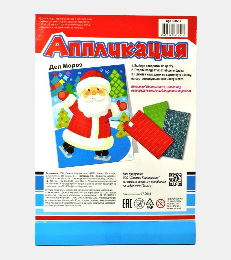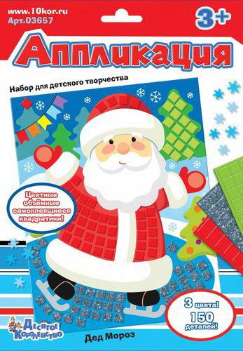 Аппликацию с самоклеящимися элементами «Дед мороз», как и многие другие , можно приобрести со скидкой в интернет магазине производителя «Десятое Королевство».