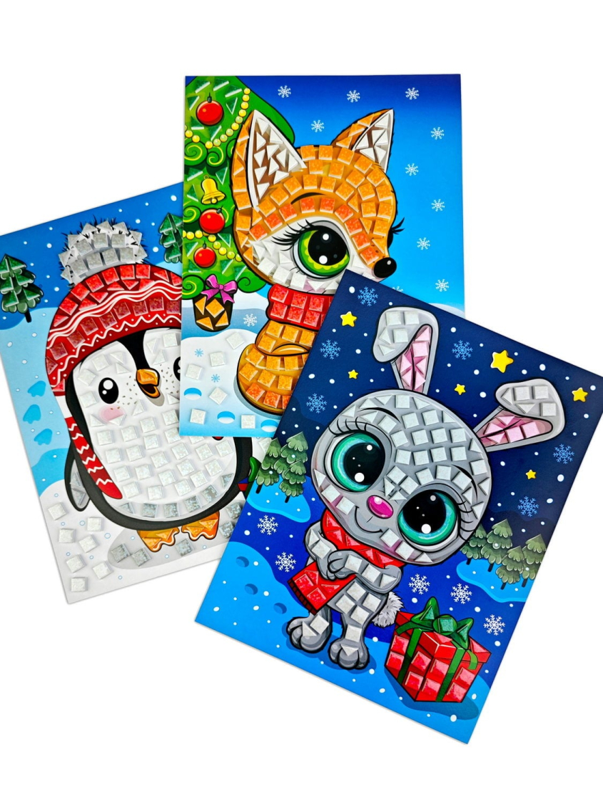 Новый год Разноцветная мозаика (3 в 1). Заяц. Пингвин. Лиса