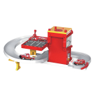 В комплекте: пожарная станция, состоящая из зоны парковки на втором уровне, лифт для перемещения машин между этажами, пандус для спуска со второго уровня, пожарная машинка.