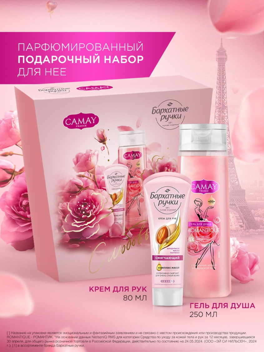 CAMAY + Бархатные ручки Подарочный набор уходовой косметики для женщин — это отличный выбор для презента на любой праздник и просто так.