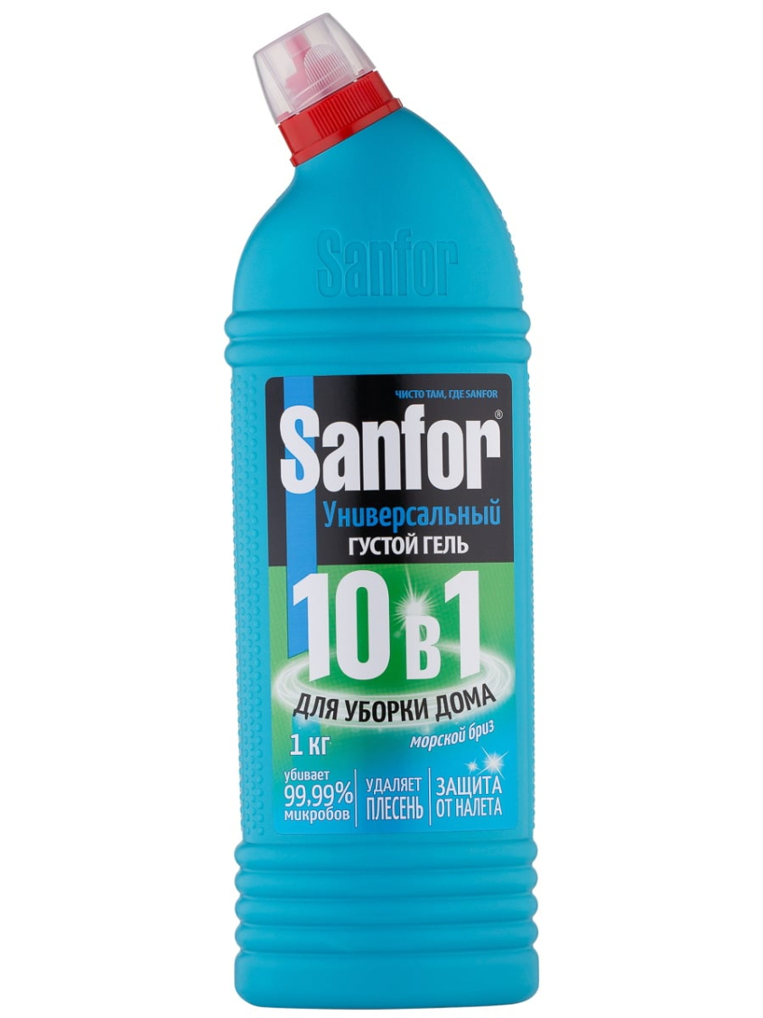 Гель для уборки 10 в 1 от Sanfor – универсальное чистящее средство для эффективной и быстрой очистки различных поверхностей в вашем доме. Он идеально подходит для уборки ванной, душевой кабины, унитаза, раковины, плитки и напольных покрытий, а также поверхностей на кухне. Очиститель имеет дезинфицирующее действие, благодаря которому удаляются микробы и неприятные запахи. Оно эффективно чистит загрязнения и жир, быстро придавая поверхности блеск и белизну. Этот концентрированный жидкий гель имеет антибактериальные свойства, дезинфицируя и уничтожая микробы, обеспечивая максимальную чистоту и гигиену. Поставляется в литровой бутылке, что делает его экономичным в использовании. Средство содержит хлор для дезинфекции. Он эффективно очищает от разводов и не оставляет следов на поверхности, устраняя серый налет, грязь, плесень и грибок. Концентрат можно использовать не только для мытья туалета и кухни, но и других помещений в доме. Он подходит для чистки сантехники, слива, водостоков и других поверхностей, гарантируя чистоту и безопасность надолго. Погрузитесь в атмосферу свежести и чистоты с ароматом, который оставляет моющий гель Санфор после уборки. Ваш дом будет наполнен приятным запахом, а вы сможете насладиться чистотой и белизной, которые обеспечивает это мощное средство бытовой химии. Благодаря загущенной формуле, гель расходуется экономично, равномерно распределяется и не стекает с наклонных поверхностей. Флакон оснащен антискользящей поверхностью, его удобно удерживать в руке во время уборки, а также блокиратором крышки для защиты от детей. Уважаемые покупатели! Обращаем Ваше внимание на возможное изменение упаковки.