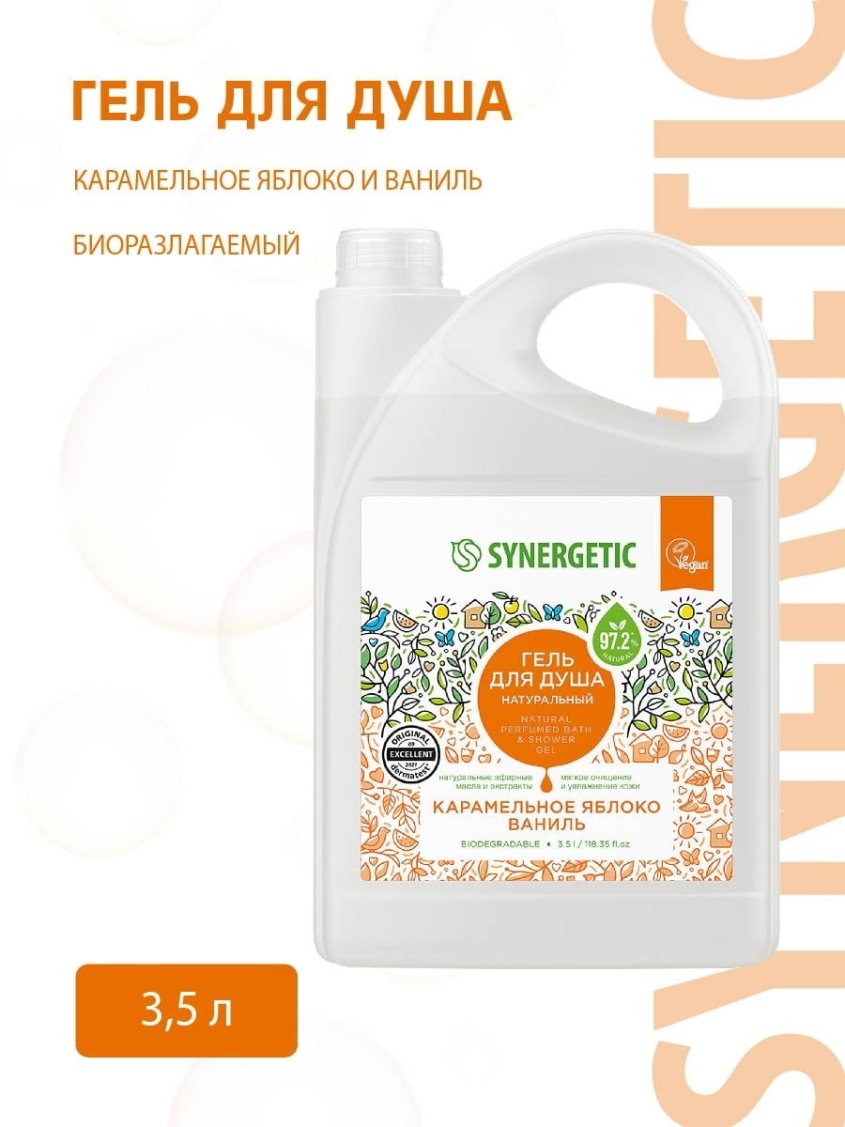 SYNERGETIC Натуральный гель для душа "Карамельное яблоко и ваниль", биоразлагаемый, 3,5л