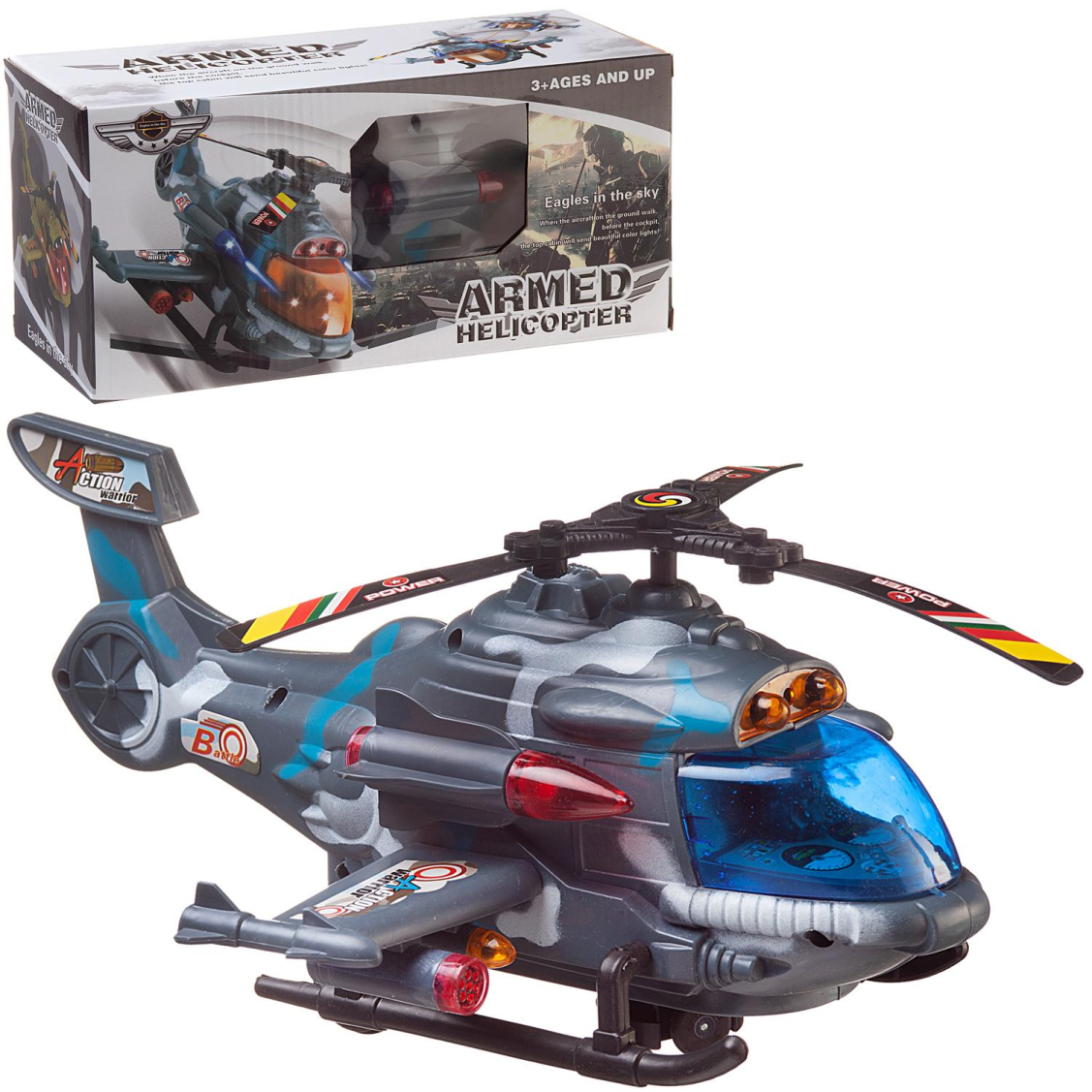 Игрушечный детский военный вертолет обязательно понравится мальчишкам, которые мечтают носить армейскую форму, любят играть в военные игры и смотреть фильмы про войну. Вертолет имеет реалистичный дизайн, прочную конструкцию и оптимальный размер для интересной игры. После включения вертолет начинает двигаться, при столкновении с препятствием на своем пути меняет направления движения. Световые и звуковые эффекты сделают игру с вертолетом еще интереснее и увлекательнее.