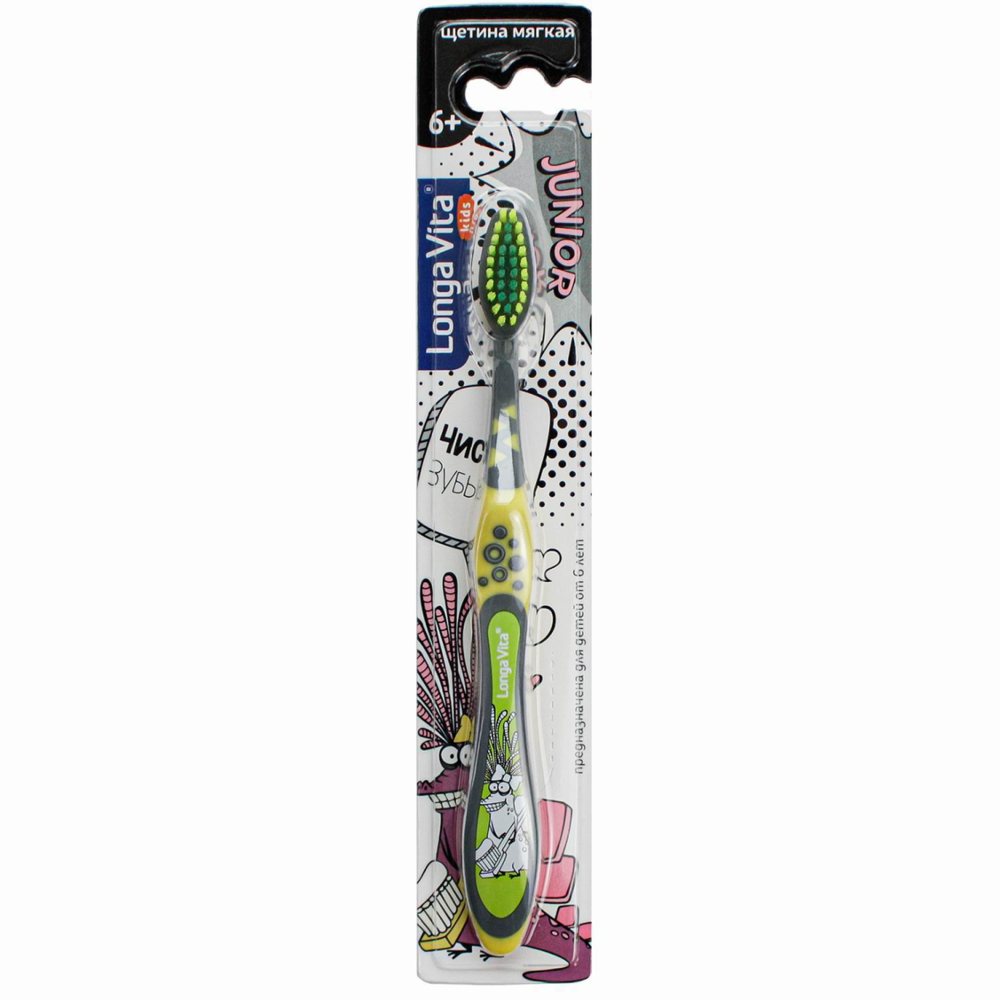 Зубная щетка Longa Vita Junior детская желто-зеленая, от 6-ти лет